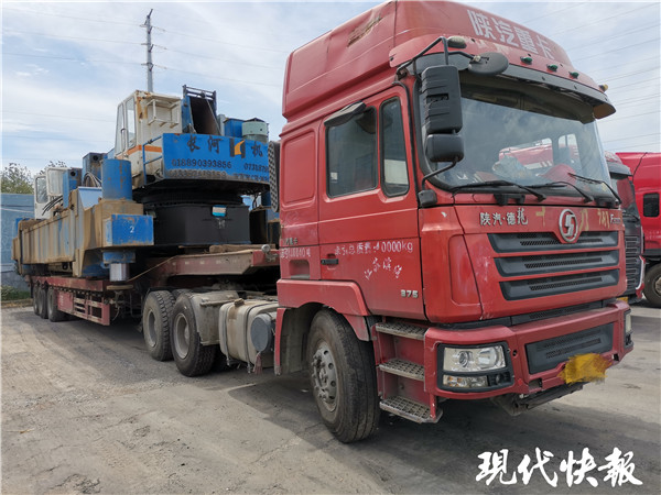 現(xiàn)代快報(bào)記者了解到,8月12日凌晨1點(diǎn)多,常州市交通執(zhí)法支隊(duì)治超大隊(duì)聯(lián)合新北交警大隊(duì)在新北區(qū)開展交通違法行為檢查,在龍江北路與東海路路口發(fā)現(xiàn)一輛鹽城牌照的重型半掛車,該車裝載一臺(tái)液壓靜力壓樁機(jī)主機(jī),有重大超限超載運(yùn)輸嫌疑。