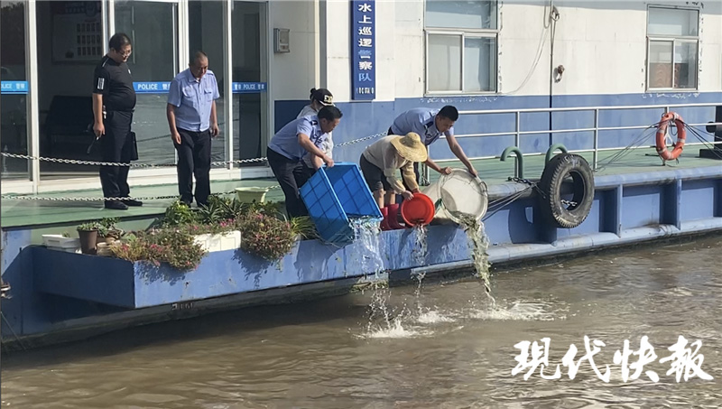 (通訊員 曹昌遠 記者 曹德偉)8月18日清晨,周某、王某等飯店老板趕到長航公安局鎮(zhèn)江分局揚州派出所,在民警的現(xiàn)場見證下,將自愿出資購買的2000余尾魚苗放流長江。