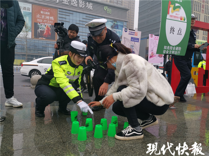 “千萬不要酒駕,剛剛的體驗(yàn)讓我暈頭轉(zhuǎn)向,隨時(shí)要跌倒。”12月2日,淮安舉行全國交通安全日啟動(dòng)儀式宣傳活動(dòng),淮陰區(qū)某駕校學(xué)員徐女士戴起醉駕體驗(yàn)眼鏡,從起點(diǎn)出發(fā),沿著擺放好的錐桶前進(jìn),搖搖晃晃半天才走到終點(diǎn)。
