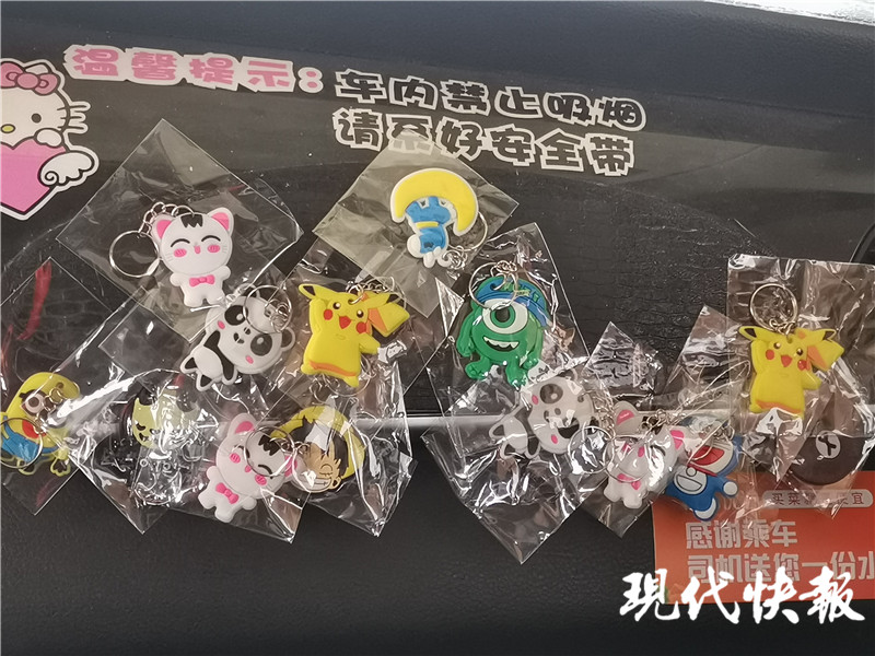 很快,徐祥就采購了一批掛飾,維尼小熊、海綿寶寶、叮當(dāng)貓……他把這些小禮物一個個粘貼在車?yán)?,五顏六色的,乘客一上車就能看到,有的還會好奇地詢問。“大部分乘客都挺有素質(zhì),只要是按時上車,態(tài)度禮貌,我都會送他們一個。”徐祥說,小禮物值不了幾個錢,但是外形可愛治愈,不少乘客發(fā)現(xiàn)打車還能拿到小禮物,都會很開心。特別碰到一些年輕人,他們會在車上拍照發(fā)朋友圈,“炫耀”一下當(dāng)天的好運(yùn)氣,這都讓徐祥覺得很滿足。