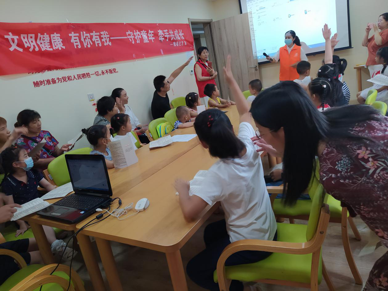 立秋后天氣涼爽,殷巷社區(qū)的許多居民帶著孩子聚集在新時(shí)代文明實(shí)踐站進(jìn)行舞蹈、書(shū)法、手工等活動(dòng),社工和志愿者們走進(jìn)新時(shí)代文明實(shí)踐站,通過(guò)發(fā)放“民法典50問(wèn)”的繪本,向社區(qū)居民解讀了部分關(guān)于民法典的基本常識(shí),并同居民開(kāi)展了問(wèn)答互動(dòng),為積極參與回答的社區(qū)居民們送上了雨傘等小禮品,居民們紛紛表示有所收獲。