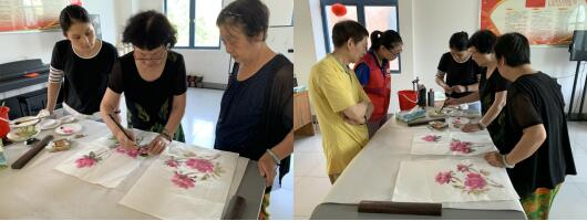 有愛,更有溫度。此次活動中,邵圣社區(qū)明月港灣沐方軒畫室桑義芳老師帶領(lǐng)大家提升牡丹畫法,首先為大家講解畫筆的調(diào)色,如何通過色彩的濃淡變化,刻畫畫面的遠(yuǎn)近、虛實關(guān)系,采取不同筆法的運(yùn)用處理,突出花朵的層次,從整個畫面的謀篇布局,到具體細(xì)節(jié)的細(xì)致處理。隨后,在老師的指導(dǎo)下,老學(xué)員們紛紛上手,在紙張上用心刻畫出自己理解和對繪畫知識的掌握,經(jīng)過上學(xué)期的入門學(xué)習(xí),這學(xué)期的提升課大家已經(jīng)熟練了很多,不一會一幅幅栩栩如生的畫便展現(xiàn)在大家面前,桑老師逐一點(diǎn)評并點(diǎn)出問題和優(yōu)化方案,有時會直接幫助大家就行優(yōu)化補(bǔ)充,果然優(yōu)化后的牡丹花更飽滿更生動。