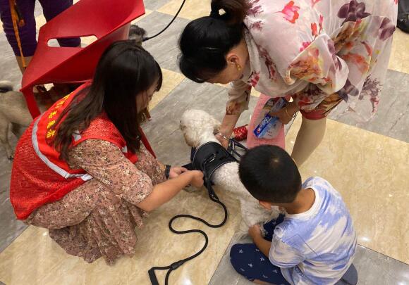 黨員志愿者提前準備了文明養(yǎng)犬宣傳冊、倡議書,還為居民準備了遛狗繩、狗毛梳等小禮品。傍晚時分,出門遛狗散步的居民多了起來,活動現(xiàn)場也熱鬧了起來。黨員志愿者向居民發(fā)放了宣傳冊,倡導居民依法養(yǎng)犬、安全養(yǎng)犬、衛(wèi)生養(yǎng)犬、文明養(yǎng)犬,與居民進行了養(yǎng)犬的互動與交流,引導居民填寫了文明城市調(diào)查問卷、并征集文明城市創(chuàng)建過程中的居民意見。居民們在黨員志愿者的引導下登記了寵物信息,并領取了小禮品。“這個繩子太酷了,像警犬的繩子一樣。”“這個衣服挺好看的,寬松,不會勒著狗。”“這狗繩上還有反光條,夜間遛狗安全多了。”志愿者為狗狗們穿戴上遛狗繩,居民們紛紛表示滿意和支持。