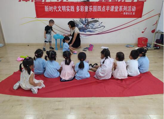 一千個讀者有一千個哈姆雷特,一千個孩子也有一千種成長的方式,在教育千篇一律的當(dāng)下,為了提高孩子們的創(chuàng)新能力,提升他們的自我保護意識,9月9日下午,南京市江寧區(qū)秣陵街道殷巷社區(qū)在4樓舞蹈室開展了“大手拉小手,多彩童樂園”四點鐘課堂——《我不跟你走》,開啟他們在社區(qū)的另一場學(xué)習(xí)之旅。