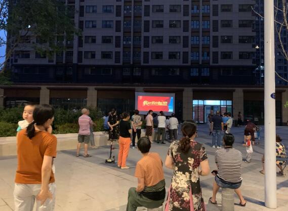 在前期電影內(nèi)容的選擇上,大家一致覺得播放“紅色電影”可以更好的推廣社區(qū)精神文化。通過前期的社區(qū)宣傳欄、電子屏、社區(qū)微信群、入戶調(diào)研時宣傳等多種形式通知大家積極參與。晚上7點不到,廣場上已經(jīng)有不少居民到來,等待電影的播出。影片播放過程中,很多居民深受感染,每到動情之處都會情不自禁的流下激動的淚水,每到振奮人心處現(xiàn)場都伴有為祖國驕傲的掌聲。影片結(jié)束后,一位居民對社區(qū)工作人員說,這部電影他看了好幾遍,每次都有不同的感悟,感嘆祖國的日益強盛和現(xiàn)今百姓的全民素質(zhì)都在提升。梁書記在和居民聊天時也表示現(xiàn)在大家的生活水平日益提高,精神文化建設(shè)不可懈怠,也非常感謝居民們的配合,給與支部工作很大的支持。