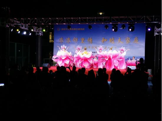 在觀眾的期待中,9月19日晚上6:30,演出在開(kāi)場(chǎng)舞《春?!分姓嚼_(kāi)帷幕。本場(chǎng)演出涵蓋了舞蹈、合唱、模仿秀、戲曲和雜技等形式多樣的節(jié)目。演出一開(kāi)始主持人的風(fēng)趣幽默便讓人感受到會(huì)場(chǎng)上濃烈的氣氛。紅歌互動(dòng)調(diào)激發(fā)了人們的愛(ài)國(guó)情懷,引發(fā)臺(tái)上臺(tái)下同齊聲唱。舞蹈隊(duì)的《古典麗人行》的表演充分體現(xiàn)了中國(guó)傳統(tǒng)文化的美,讓人久久回味沉浸其中。模仿秀《模仿大人》活潑靈動(dòng)幽默,體現(xiàn)了小區(qū)的文化娛樂(lè)。雜技《柔術(shù)頂燈》專(zhuān)業(yè)演員們帶來(lái)的精彩表演,讓居民們應(yīng)接不暇、拍手稱(chēng)快。最后全場(chǎng)互動(dòng)大合唱《歌唱祖國(guó)》嘹亮歌聲唱出對(duì)祖國(guó)母親的熱愛(ài)。