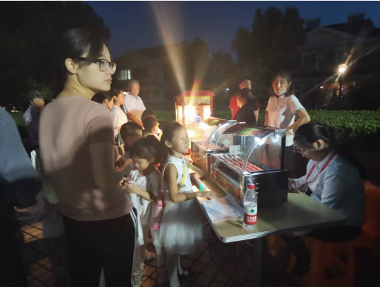 現(xiàn)場,為了讓晚會更有節(jié)日氛圍,還設(shè)置了免費(fèi)的零食區(qū)域,香甜的爆米花、肉感十足的烤腸......廣場的上空除了悠揚(yáng)的歌聲還飄蕩著四溢的香氣,小吃尚未出鍋,青少年們就已在攤位面前排起了長隊(duì)。