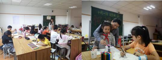 課堂上,志愿者們和孩子們觀看《國(guó)慶節(jié)的由來(lái)》動(dòng)畫(huà)片。在觀看的過(guò)程中,志愿者向孩子們講解到:“我們的幸福生活來(lái)之不易,要時(shí)刻牢記那些為國(guó)家獨(dú)立、民族解放而作出犧牲的前輩們。”隨后,志愿者老師老師給孩子們講解了繪畫(huà)色彩的運(yùn)用、使用技巧等,孩子們則迫不及待地在紙上進(jìn)行設(shè)計(jì)構(gòu)圖,根據(jù)自己的構(gòu)圖在環(huán)保手提袋上勾勒形狀、用水調(diào)和顏料,最后再用彩筆對(duì)畫(huà)紙進(jìn)行上色。孩子們懷著濃濃愛(ài)意,依照自己的想象力一筆一畫(huà)認(rèn)真圖畫(huà),他們用五彩繽紛的色彩和優(yōu)美的線(xiàn)條描繪出鮮艷的五星紅旗、天安門(mén)和“71”周年的字眼,他們用一雙雙稚嫩的小手繪畫(huà)出了一幅幅形態(tài)各異、色彩斑斕的作品,表達(dá)出他們對(duì)祖國(guó)祝福和對(duì)未來(lái)的憧憬。