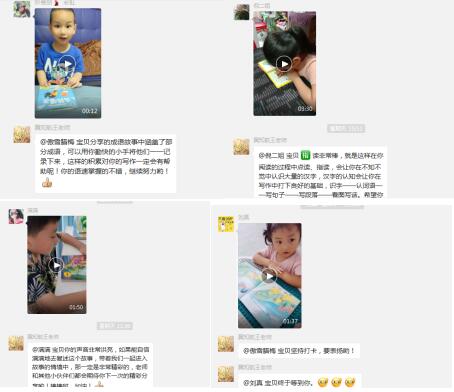 親子閱讀,老師傳授閱讀方法并且每日在微信群里打卡閱讀,老師進(jìn)行點(diǎn)評(píng)。以這樣的方式在提高閱讀能力的同時(shí)也培養(yǎng)了好的閱讀習(xí)慣。