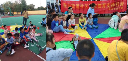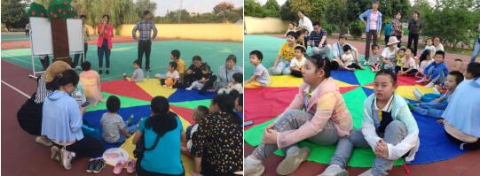 雖然陽(yáng)光強(qiáng)烈,但現(xiàn)場(chǎng)卻依然聚集了很多家長(zhǎng)和小朋友,大家圍坐在“籃球”地毯上,熱情也將氣氛不斷推向高潮。為了能讓親子家庭更好地參與籃球體驗(yàn),志愿者們根據(jù)小朋友們的年齡等具體情況,精心設(shè)計(jì)了好玩的小游戲?,F(xiàn)場(chǎng)準(zhǔn)備了精彩紛呈的游戲節(jié)目,比如采摘蘋(píng)果樹(shù)、繪本比拼等。在“拔河”環(huán)節(jié),孩子們?cè)谧院翱谔?hào),家長(zhǎng)助威聲、加油聲震天,場(chǎng)上一片沸騰。比賽場(chǎng)面緊張激烈,精彩紛呈,高潮迭起。每一個(gè)參賽者都抱著必勝的決心努力一拼,勁往一處使。在孩子們揮動(dòng)手中的“五星紅旗”中,本次活動(dòng)落下了帷幕。