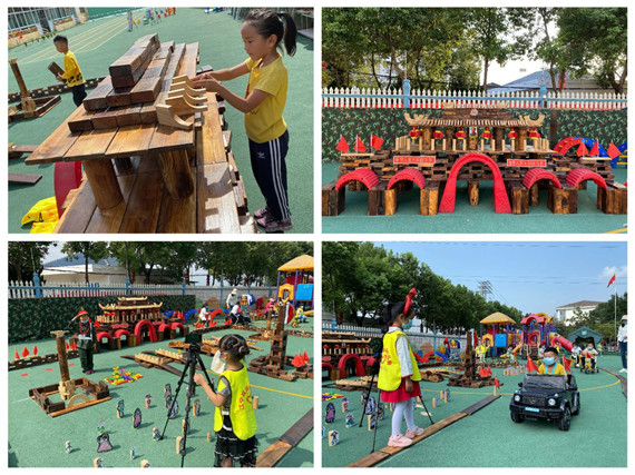 大一班:搭建天安門(mén)、換軍裝拍照留念、開(kāi)車(chē)閱兵