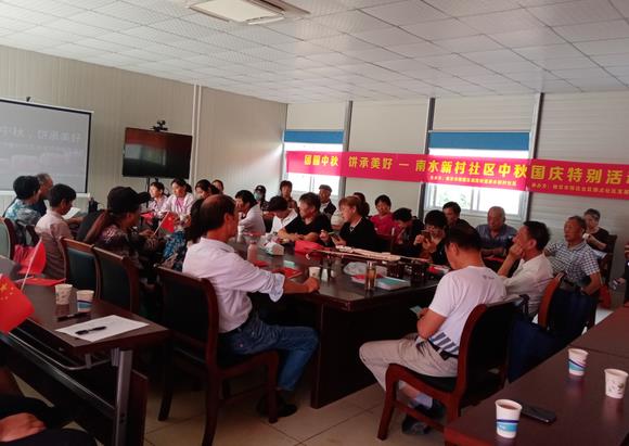 活動開始,南水新村社區(qū)的丁宗明書記首先為居民送上了喜迎國慶,歡度中秋的祝福,然后發(fā)言慶祝中華人民共和國成立71周年,憶崢嶸歲月、話美好未來,感受中華人民共和國成立和發(fā)展的艱辛歷程,感受中國共產(chǎn)黨的初心和使命,珍惜來之不易的美好生活,激發(fā)了居民愛國愛家的熱情。