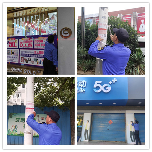 二、清理“亂貼亂畫”,保障環(huán)境秩序。電線桿、墻體、地面等區(qū)域小廣告、“牛皮癬”亂貼亂畫現(xiàn)象極易反復(fù),且大多存在于主次干道、背街小巷、農(nóng)貿(mào)市場等重點(diǎn)區(qū)域路段,涉及面較廣,流動(dòng)性較大。針對此情況,大隊(duì)組織專人開展巡查,明確問題易發(fā)點(diǎn),一方面利用鏟刀、刷子等工具協(xié)同清理,發(fā)現(xiàn)一處,整治一處,確保“全面覆蓋、不留死角”;另一方面加強(qiáng)與沿街商戶及周邊居民群眾的溝通交流,從源頭抓好教育引導(dǎo)工作,加大“回頭看”的力度,確保“常態(tài)長效、不再反彈”。