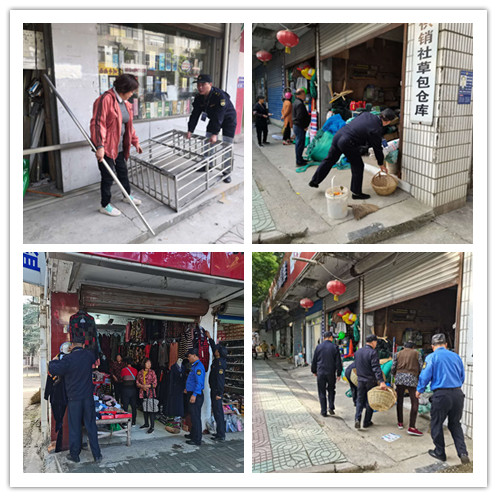 二、打好“服務(wù)牌”,保持抓管并重的干勁。農(nóng)貿(mào)市場(chǎng)內(nèi)外環(huán)境“臟亂差”,一直以來(lái)是集鎮(zhèn)管理的重點(diǎn)和難點(diǎn)。對(duì)此,大隊(duì)在市場(chǎng)內(nèi)外增設(shè)值守人員,全力協(xié)助市場(chǎng)管理方加強(qiáng)對(duì)農(nóng)貿(mào)市場(chǎng)的管理力度,不定期對(duì)市場(chǎng)內(nèi)部存在的占道經(jīng)營(yíng)、亂堆亂放、暴露垃圾、衛(wèi)生死角等開(kāi)展集中整治行動(dòng),將管理與服務(wù)有機(jī)結(jié)合起來(lái),保障市場(chǎng)內(nèi)外環(huán)境衛(wèi)生整潔有序。