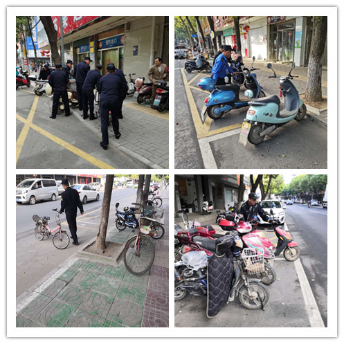 三、打好“長(zhǎng)效牌”,保持常抓不懈的韌勁。對(duì)占道經(jīng)營(yíng)、亂堆亂放等“門(mén)前三包”落實(shí)不到位的,在日常工作中進(jìn)一步加強(qiáng)城市管理相關(guān)法律法規(guī)的教育引導(dǎo),提高沿街商戶自我約束、自我管理的意識(shí);對(duì)亂停亂放非機(jī)動(dòng)車(chē)的,安排專(zhuān)人蹲守,加強(qiáng)動(dòng)態(tài)管控,確保非機(jī)動(dòng)車(chē)有序停放至劃線區(qū)域,做到“方向一致,整齊劃一”,落實(shí)長(zhǎng)效管理機(jī)制。