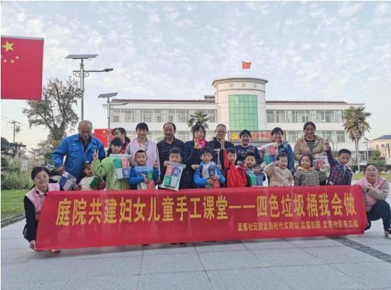 美麗庭院創(chuàng)建是美麗鄉(xiāng)村建設的重要組成部分,而垃圾分類工作的開展讓美麗庭院創(chuàng)建更加“靚麗”。為深化推進垃圾分類工作,助力社區(qū)美麗庭院創(chuàng)建,10月22日,南京市江寧湯山孟墓社區(qū)新時代文明實踐站聯(lián)合社區(qū)婦聯(lián)、關工委開展“四色垃圾桶我會做”庭院共建婦女兒童手工課堂活動。