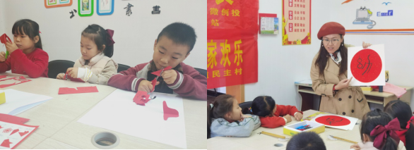 最后共享歡樂(lè),開始中國(guó)風(fēng)剪紙,在傳統(tǒng)藝術(shù)獨(dú)特魅力的感染下,孩子們聽得仔細(xì),有的折紙、有的剪紙,大家在愉悅的氣氛中相互學(xué)習(xí)相互交流,認(rèn)真地剪刻著自己的圖案,一幅幅惟妙惟肖的剪紙作品完成了。