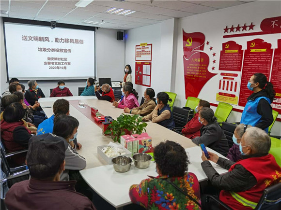 聯(lián)合共建單位南京志達環(huán)保有限公司黨支部、南京郵政堯化門黨支部等共建單位開展“送文明新風(fēng) 助力移風(fēng)易俗”活動?;顒又?,志達環(huán)保的工作人員向大家科普了垃圾分類的概念,講解了垃圾的后續(xù)利用價值,介紹了堯化街道垃圾分類的政策要求,倡導(dǎo)大家做好垃圾分類的示范作用。