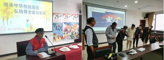 紅色傳承,銀發(fā)黨員說重陽。節(jié)日當天,78歲的銀發(fā)黨員陳茂俊為社區(qū)的孩子們講述重陽有關的故事,從重陽的民間習俗,到老人節(jié)的新風尚;從敬老愛老的傳統(tǒng)文化,到尊老孝親的文明家風,現(xiàn)場掌聲陣陣。五十年前,陳茂俊從北京石油大學畢業(yè),毅然投入祖國石油事業(yè)的建設中,如今我們腳下的這片土地,正是他們老一輩揮灑青春,用辛勤和汗水鑄就的家園。今天的美好生活來之不易,只有內(nèi)心充滿感恩,才能不斷前行。演講結束后,大家老少同樂共品花糕、制作手工畫,共度重陽,畫面溫馨而美好。