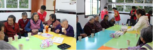 在層林漸染的深秋里,村內(nèi)的老年群眾一起相聚于深秋溫柔的陽(yáng)光之下,看那初火新煙雪湯沸,品那花瓷甜點(diǎn)菊花茶,大家端坐室內(nèi),悠然愜意。“獨(dú)在異鄉(xiāng)為異客,每逢佳節(jié)倍思親.遙想兄弟登高處,遍插茱萸少一人......”伴隨著重陽(yáng)佳話,老年群體在歡聲笑語(yǔ)中跟隨志愿者的講解一同重溫重陽(yáng)節(jié)的典故,了解了九九重陽(yáng)節(jié)的傳統(tǒng)習(xí)俗?;顒?dòng)的最后,聽歌識(shí)曲大PK環(huán)節(jié)將現(xiàn)場(chǎng)的氛圍推向高潮,老年群體們互不示弱,火熱搶答,在你來(lái)我往的比分追趕間比拼成為最后的大贏家,贏取精心準(zhǔn)備的敬老禮盒。