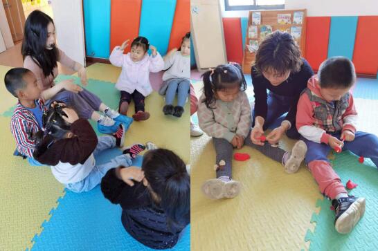 在“自我介紹”中,本次活動拉開了序幕。隨后,志愿者老師和親子家庭開展親子游戲。游戲前,教師根據(jù)嬰幼兒年齡特點,精心設(shè)計了適宜的游戲,在游戲中,圍繞促進孩子各項技能的發(fā)展,在游戲中提高孩子的反應(yīng)能力等主題,通過親子游戲增進親子之間的感情,讓寶寶體驗游戲的快樂。在手工環(huán)節(jié),志愿者準備了各種顏色的橡皮泥還有竹簽。小朋友在志愿者的引導下,把橡皮泥分成塊,然后團成圓形,再將團好的圓形自己穿在竹簽上,最后添加上甜甜的白砂糖,一串串自制的冰糖葫蘆就做完了。最終,活動在跳舞做游戲中落下了帷幕。