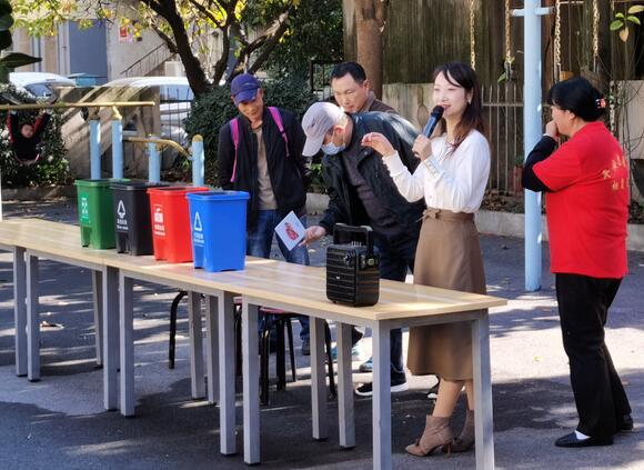 活動(dòng)開始,由專門的社區(qū)垃圾分類志愿者老師主持,向大家講述我國(guó)垃圾分類的背景、意義和目的,科普宣傳垃圾分類知識(shí),現(xiàn)場(chǎng)教居民如何進(jìn)行垃圾分類。堯安新村社區(qū)的公眾委員呂修才積極參與活動(dòng),在活動(dòng)開始前和結(jié)束后,認(rèn)真為老年居民介紹垃圾的種類以及如何進(jìn)行分類,周圍人聽得聚精會(huì)神。