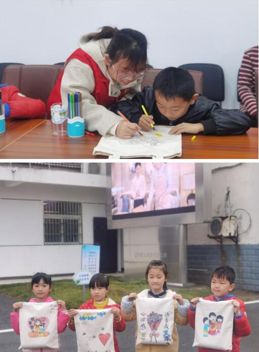 隨后,志愿者向孩子們分發(fā)了水彩筆及白色帆布袋,讓他們懷著一顆感恩的心在帆布袋上自主創(chuàng)作,用一幅幅畫(huà)作表達(dá)對(duì)于社會(huì)關(guān)懷的感謝,感謝父母和長(zhǎng)輩。
