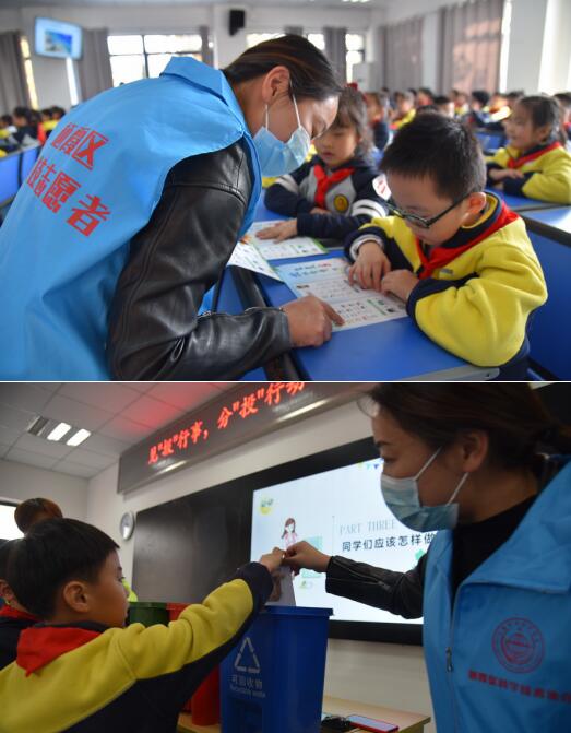 “通過今天的活動可以向學生普及垃圾分類知識,還能讓孩子們通過小手拉大手,把垃圾分類的知識帶到家庭當中,從每個人每個家庭做起,為美麗南京建設盡一份力,特別有意義。”社區(qū)負責人表示,活動結束后全科社工將會向同學們發(fā)放《南京市生活垃圾分類投放指引》,讓同學們成為垃圾分類的踐行者、傳播者、宣傳者,從小養(yǎng)成愛護環(huán)境、資源回收利用的良好習慣。(圖片由通訊員聶露露 章蕾提供)