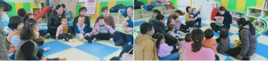 活動(dòng)正式開(kāi)始,寶寶們?cè)谠缃汤蠋煹墓膭?lì)引導(dǎo)下積極地做自我介紹,很快消除了寶寶在新環(huán)境的焦慮感,同時(shí),老師根據(jù)寶寶的月齡特點(diǎn)精心準(zhǔn)備了許多豐富多彩、充滿樂(lè)趣和挑戰(zhàn)的親子互動(dòng):繪本閱讀、青蛙舞及蠟筆繪畫(huà)等,以“科學(xué)養(yǎng)育,教養(yǎng)合一;關(guān)注個(gè)性,順應(yīng)發(fā)展;有效回應(yīng),培養(yǎng)習(xí)慣”為指導(dǎo)理念,讓寶寶在生動(dòng)活潑的游戲中進(jìn)行潛能開(kāi)發(fā),提高嬰幼兒感官、語(yǔ)言、音樂(lè)、社交以及動(dòng)手操作等方面能力,使家長(zhǎng)和寶寶們?cè)谟螒蛑性鲞M(jìn)親子情感、增強(qiáng)參與集體活動(dòng)的樂(lè)趣和適應(yīng)能力。