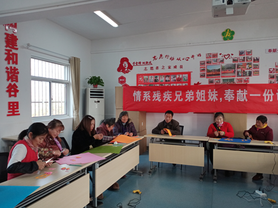 當(dāng)日下午,谷里街道殘聯(lián)在今年11月新建的幸福谷殘疾人之家舉行了“國(guó)際殘疾人日,有緣相聚幸福谷”扶殘助殘主題活動(dòng),工作人員帶領(lǐng)殘疾人先做了一個(gè)互動(dòng)小游戲,讓殘疾人之間相互熟悉,為殘疾人之間的相互溝通、交流提供一個(gè)機(jī)會(huì),分享相互之間的快樂(lè);之后大家在工作人員手把手細(xì)心的指導(dǎo)下,認(rèn)真學(xué)習(xí)制作,經(jīng)過(guò)殘疾人朋友們的努力,一朵朵精美的手工花在大家手中完成。此次活動(dòng)不僅鍛煉了殘疾朋友們的動(dòng)手能力和交流能力,也增強(qiáng)了他們?nèi)谌肷鐣?huì)、樹(shù)立自立自強(qiáng)的信心。