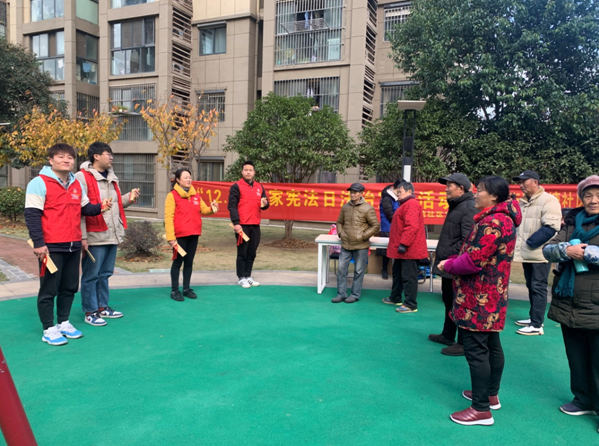 為深入學習貫徹黨的十九屆五中全會精神,切實加大法治建設宣傳力度,提高法治宣傳實效,積極營造居民關心、支持和參與法治建設的良好氛圍,進一步在社區(qū)范圍內做好法制建設宣傳工作,12月4日上午,江寧區(qū)東山街道泥塘社區(qū)在新苑小區(qū)開展“12.4國家憲法日法制宣傳”活動。