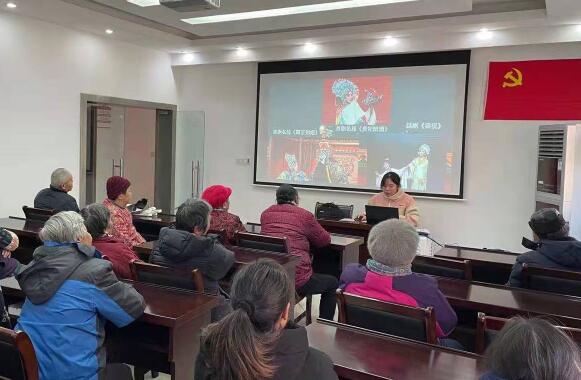 “中國(guó)戲曲主要是由民間歌舞、說(shuō)唱和滑稽戲三種不同藝術(shù)形式綜合而成,包括京劇、越劇、黃梅戲、昆劇、豫劇等等。”課上,志愿者借助PPT,圖文并茂地為居民們講解了中國(guó)戲曲的發(fā)展歷程、藝術(shù)特色、戲曲行當(dāng)、戲曲臉譜和戲曲種類等相關(guān)知識(shí),深入解析了中國(guó)戲曲的文化魅力和藝術(shù)精神,并帶大家欣賞了《盜御馬》、《誰(shuí)料皇榜中狀元》、《誰(shuí)說(shuō)女子不如男》等經(jīng)典戲曲片段?,F(xiàn)場(chǎng),居民們聽(tīng)得津津有味,看得如癡如醉。
