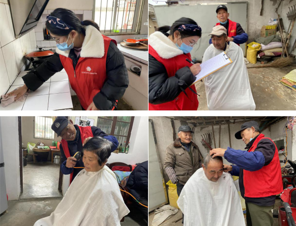 湄塘村的賈大爺,其子女因工作長期不居家。志愿者的到來,不僅為老人提供了理發(fā)、打掃、磨刀等服務,使得大爺?shù)募抑袩ㄈ灰恍?,還在歡聲笑語間與老人嘮家常、話鄰里,為空巢老人排解寂寞、提供了陪伴。