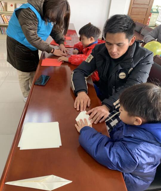 課堂上,志愿者詳細(xì)講解用彩色紙張折疊百合花的方法,原本只是一張紙,在老師的巧手折疊下竟然變成美麗的百合花,這讓孩子們倍感驚奇。大家開始嘗試著與家長(zhǎng)一起動(dòng)手制作起來(lái),一朵朵顏色鮮艷的百合花在孩子們手中綻放。在志愿者引導(dǎo)下,孩子們紛紛將折好的百合花獻(xiàn)給了自己最親最愛的人。