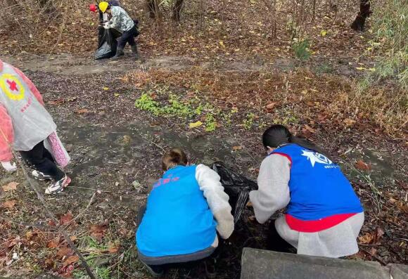 吳邊社區(qū)城市治理志愿者清理長(zhǎng)江沿岸
