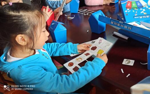 相信垃圾分類意識已經(jīng)在小朋友們的心里產(chǎn)生了小小萌芽。緊隨其后,由志愿者協(xié)助老師發(fā)放垃圾桶疊紙?zhí)讏D和生活垃圾卡片貼紙,小朋友們在志愿者的幫助下,紛紛自己動手“建造”垃圾箱,不多時孩子們的垃圾箱已經(jīng)制作完畢,對于新學到的垃圾分類知識,孩子們躍躍欲試,紛紛討論起各種垃圾的分類問題。最終,在志愿成員的提示及指導(dǎo)下,每個小朋友都交出了自己滿意的答卷,當然,在制作完成后,小朋友們自動把制作過程中產(chǎn)生的廢紙屑,塑料殼認認真真地按照垃圾分類標準丟到了指定的垃圾桶內(nèi)。通過這次活動,相信垃圾分類意識已經(jīng)深深扎根于孩子們的心中。