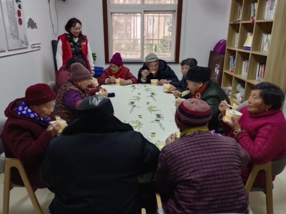 當(dāng)天,8名志愿者和10名空巢獨居老人參與其中?,F(xiàn)場,志愿者們分工合作,切菜、拌餡、和面、搟皮、包餃子,忙得不亦樂乎,把自己濃濃的祝福包進餃子里。一會兒的功夫,一個個形態(tài)飽滿的餃子就擺滿了桌子。等老人們到來后,志愿者帶老人們學(xué)習(xí)了養(yǎng)生手指操,并將煮好的餃子端給老人們進行了品嘗,吃著香噴噴的餃子,老人們滿是喜悅。此外,志愿者還將熱騰騰的水餃打包送往高齡、病殘、行動不便的老人家中。