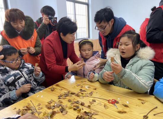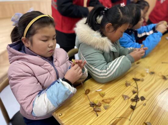 活動(dòng)開始,志愿者老師首先給大家詳細(xì)介紹了本次活動(dòng)所需要的材料,給孩子們師范制作過程,鼓勵(lì)大家開動(dòng)腦筋,發(fā)揮想象力,大家躍躍欲試,有做成立體玫瑰花形狀的,有用樹葉粘貼成一幅畫的,簡(jiǎn)單的樹葉變成了一幅幅美麗的手工作品,不僅鍛煉了孩子們的動(dòng)手操作能力,而且還讓孩子們更加熱愛大自然,熱愛多彩的世界。