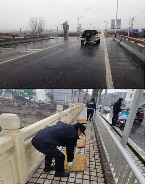 29日下午至夜間,雨雪紛紛,氣溫驟降。執(zhí)法大隊(duì)采取“人工+機(jī)械”相結(jié)合的方式,持續(xù)對(duì)轄區(qū)內(nèi)主干道、橋梁等重點(diǎn)區(qū)域撒布融雪劑、鋪設(shè)防滑草墊,防止道路結(jié)冰,保障轄區(qū)居民出行安全。