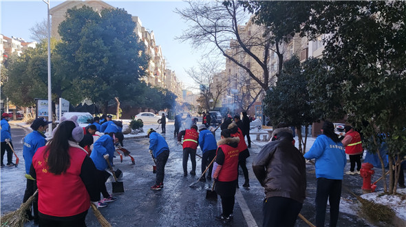 百水芊城社區(qū)黨員、環(huán)保志愿者開展掃雪除冰行動