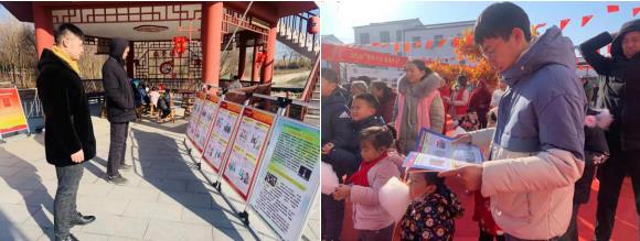 “板凳課堂”傳文化,濃濃年味鋪面來。步入現(xiàn)場(chǎng),道路兩旁的展牌吸引住了村民群眾的眼光,他們不時(shí)駐足停下,看著展牌中宣傳的有關(guān)于全民閱讀、民俗知識(shí)和法律“板凳課堂”知識(shí)等內(nèi)容,在閱讀中加深對(duì)于民俗文化和新實(shí)施的民法典的了解。