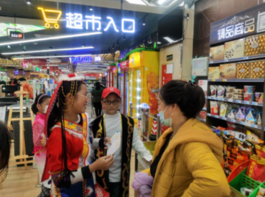 進集市,通過志愿者身著民族服裝展示、民族知識有獎問答、發(fā)放民族宣傳知識折頁等方式,激活市場群體對民族團結(jié)促融合的意識。