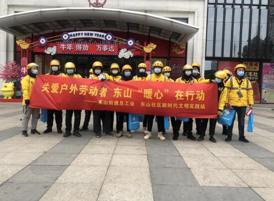 為了切實幫助戶外勞動者解決生產生活方面的實際困難,將社區(qū)、社會對于戶外勞動者的關懷與關愛送到他們的心坎上,1月5日,江寧區(qū)東山街道總工會、東山社區(qū)新時代文明實踐站在江寧萬達開展以“關愛戶外勞動者 東山‘暖心’在行動”為主題的活動。
