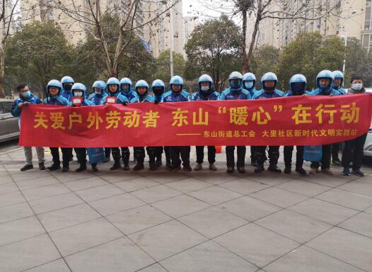 為提高服務(wù)職工精準(zhǔn)化水平,切實(shí)幫助戶外勞動(dòng)者解決生產(chǎn)生活方面的實(shí)際困難,實(shí)現(xiàn)戶外為提高服務(wù)職工勞動(dòng)者“體面勞動(dòng)、舒心工作、全面發(fā)展”,2021年1月5日,江寧區(qū)東山街道總工會(huì)、大里社區(qū)新時(shí)代文明實(shí)踐站開展以“關(guān)愛(ài)戶外勞動(dòng)者 東山‘暖心’在行動(dòng)”為主題的活動(dòng),為外賣小哥、保潔、交警送溫暖。