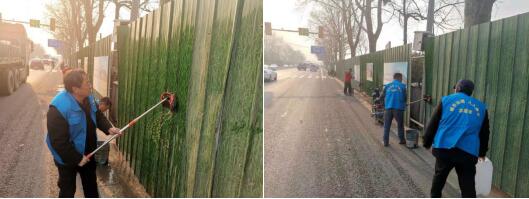 活動(dòng)現(xiàn)場(chǎng),志愿者們頂著寒風(fēng)清洗沿線護(hù)欄。為提高工作效率,他們有的使用拖把、抹布等工具負(fù)責(zé)擦洗工作,有的來回奔跑負(fù)責(zé)干凈水源運(yùn)送,經(jīng)過一整天的努力,原先“灰蒙蒙”的護(hù)欄已經(jīng)變得煥然一新。