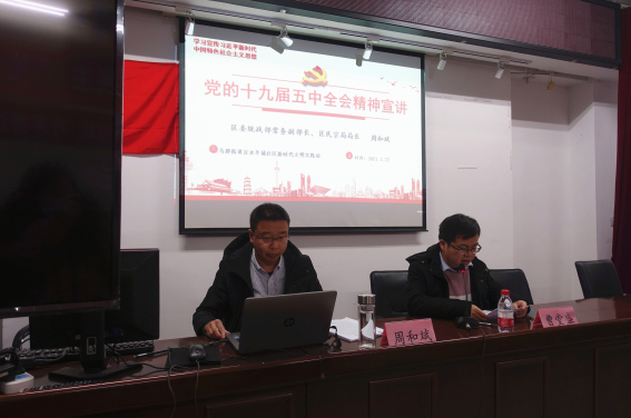 1月22日下午,南京市棲霞區(qū)委統(tǒng)戰(zhàn)部常務副部長、區(qū)民宗局局長周和斌來到馬群街道百水芊城社區(qū)宣講黨的十九屆五中全會精神,推動黨的十九屆五中全會精神深入基層、深入群眾、深入人心。