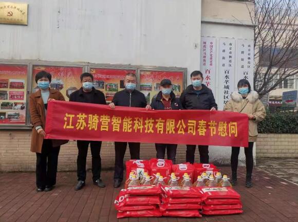 臨近年關,愛心企業(yè)南京騎營智能科技有限公司聯(lián)合馬群物業(yè)公司于2021年1月27日上午,向南京市棲霞區(qū)馬群街道百水芊城社區(qū)捐贈了一批大米、食用油等生活物資,向幫助轄區(qū)部分困難家庭送去春節(jié)的問候。