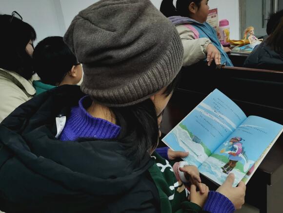 本次悅讀會一改以往志愿者講學(xué)、領(lǐng)學(xué)方式,由小朋友邀請家長或其他小朋友共同完成繪本故事講述?;顒又?,2對少兒和1對親子積極上臺,為大家講述了《掉進雪洞》、《帶上飛機的秘密玩具》、《尋找圣誕禮物》三個繪本故事。從開始的緊張磕巴到后來的繪聲繪色,現(xiàn)場繪本分享氛圍越來越濃厚起來。
