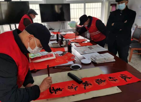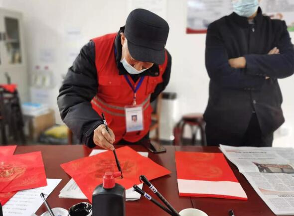 志愿者們雖然都將近耄耋之齡,但他們不怕辛苦,揮毫潑墨,筆走游龍,或遒勁灑脫,或飄逸清秀。不一會(huì),一幅幅散發(fā)著清新墨香和美好祝福的春聯(lián)展現(xiàn)在大家面前。其中堯化街道公眾委員呂修才專(zhuān)門(mén)為社區(qū)環(huán)保屋題寫(xiě)了幾幅“做好垃圾分類(lèi),共建美麗家園”的對(duì)聯(lián),由垃圾分類(lèi)志愿者貼在了幾個(gè)小區(qū)的環(huán)保屋上....一句句鏗鏘有力的春聯(lián),翰墨飄香,情誼暖暖,深深烙印在心間,為在值班站崗時(shí)的志愿者們?cè)诤涞亩鞄?lái)溫暖的氣息和濃濃的年味,表達(dá)了老黨員們對(duì)垃圾分類(lèi)志愿者們?nèi)粘9ぷ鞯母兄x以及深深的祝福。