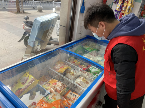 為切實(shí)加強(qiáng)疫情防控工作,保障居民群眾的身體健康與生命安全,2月4日,棲霞區(qū)馬群街道向上社區(qū)組織社區(qū)志愿者對轄區(qū)的冷鏈?zhǔn)称方?jīng)營門店開展專項(xiàng)檢查。
